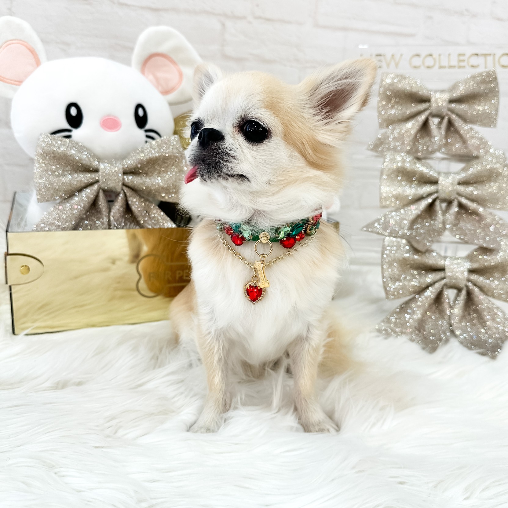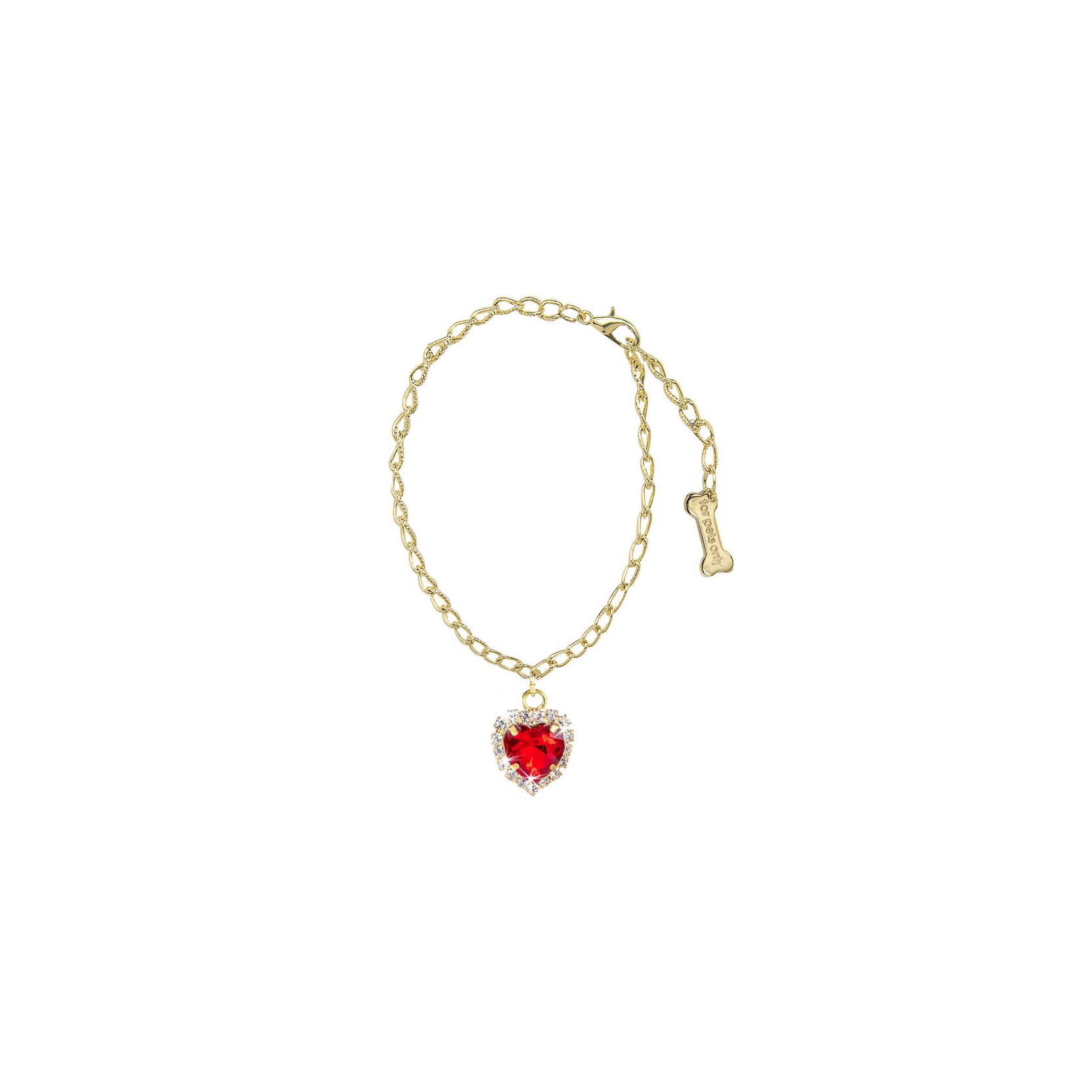 The necklace with golden chain and a beautiful glittering pendant in the shape of a red heart is perfect to wear solo or combined with your favorite collar.