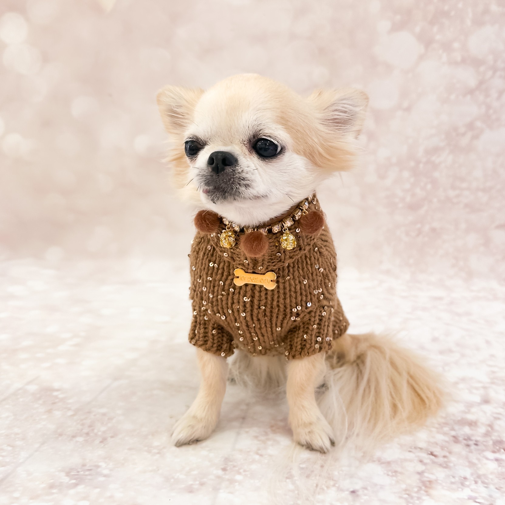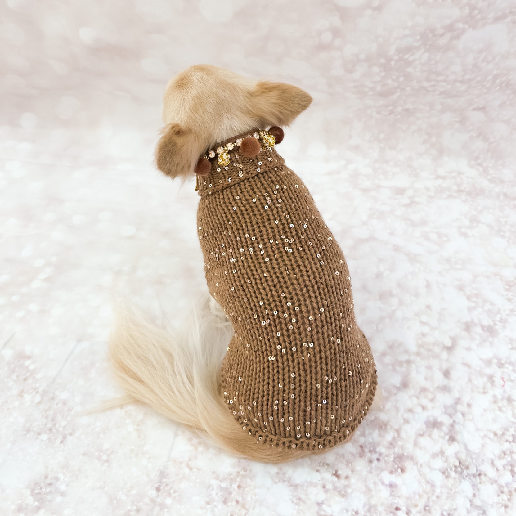 La raffinata lavorazione del capo decorato con scintillanti paillettes dorate esalta la qualità superiore del filato, offrendo un capo di ineguagliabile morbidezza e calore.