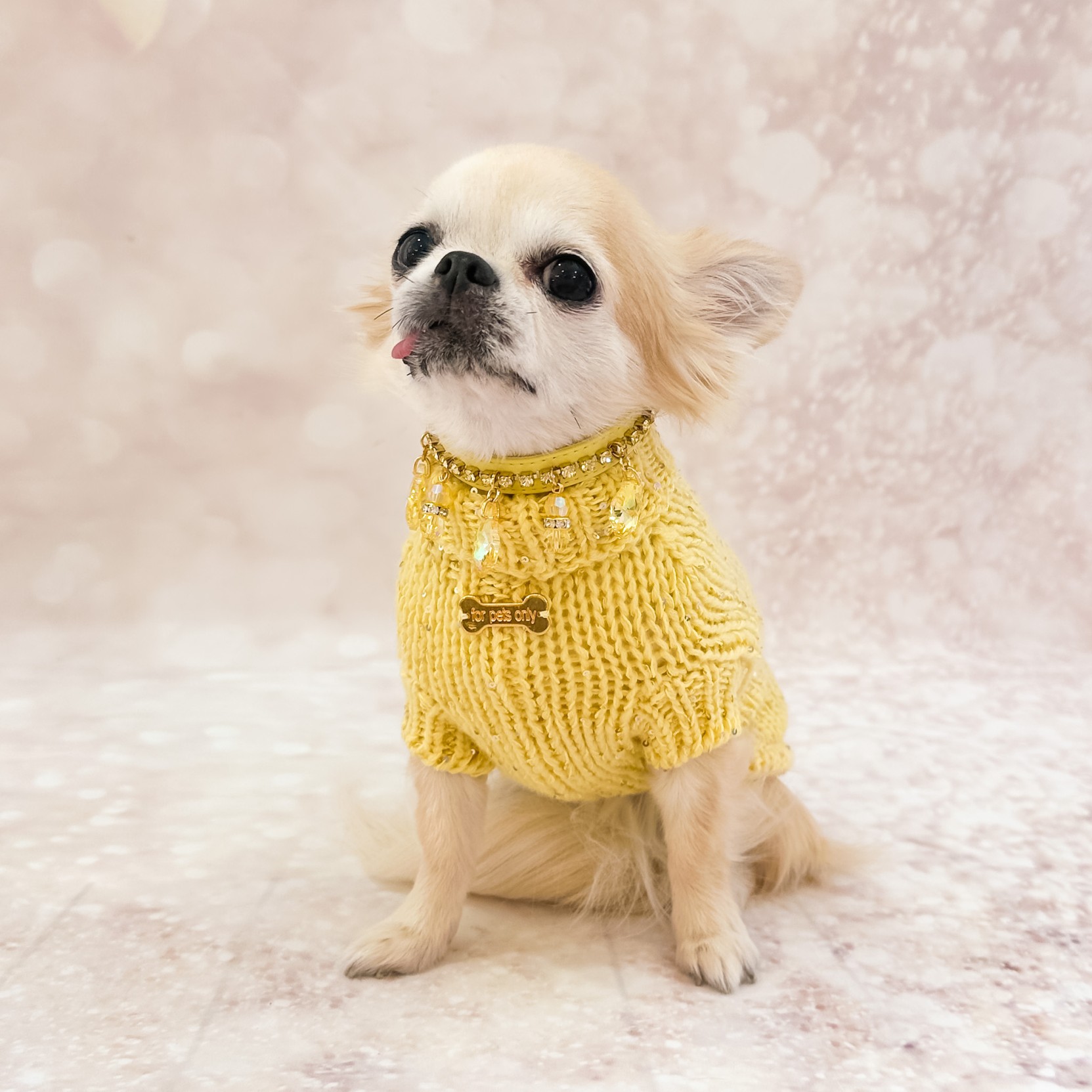 La raffinata lavorazione del capo decorato con scintillanti paillettes dorate esalta la qualità superiore del filato, offrendo un capo di ineguagliabile morbidezza e calore.