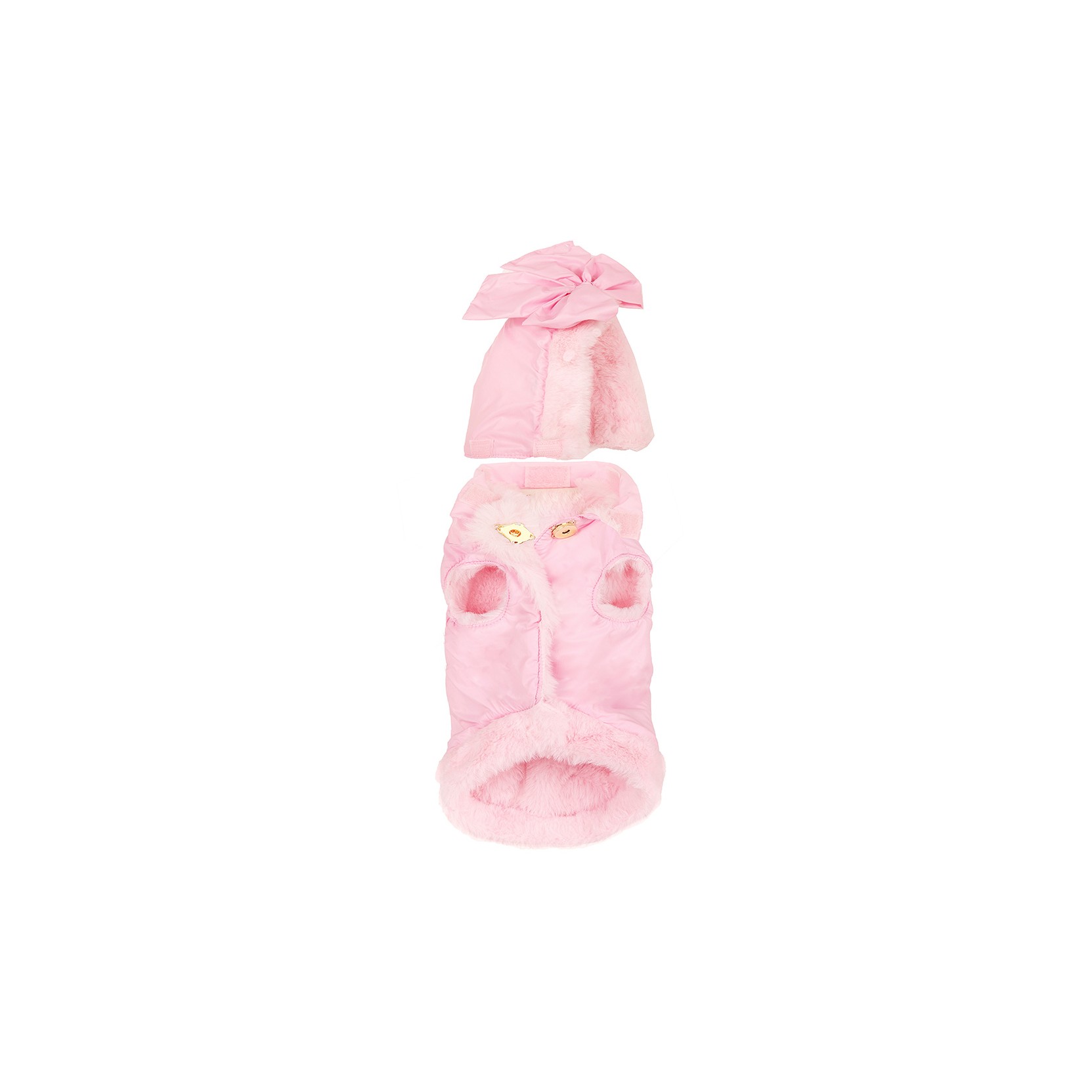 Il cappuccio e il fiocco si possono togliere e la comoda apertura con i nuovi bottoni a calamita permette di indossarlo con facilità.
