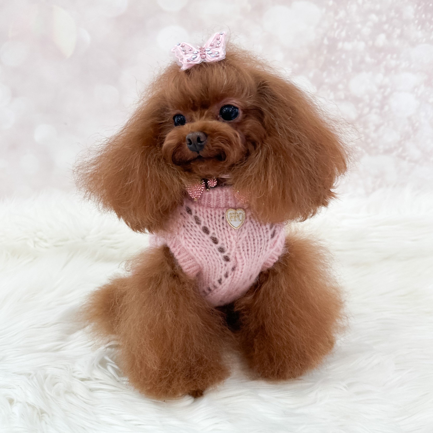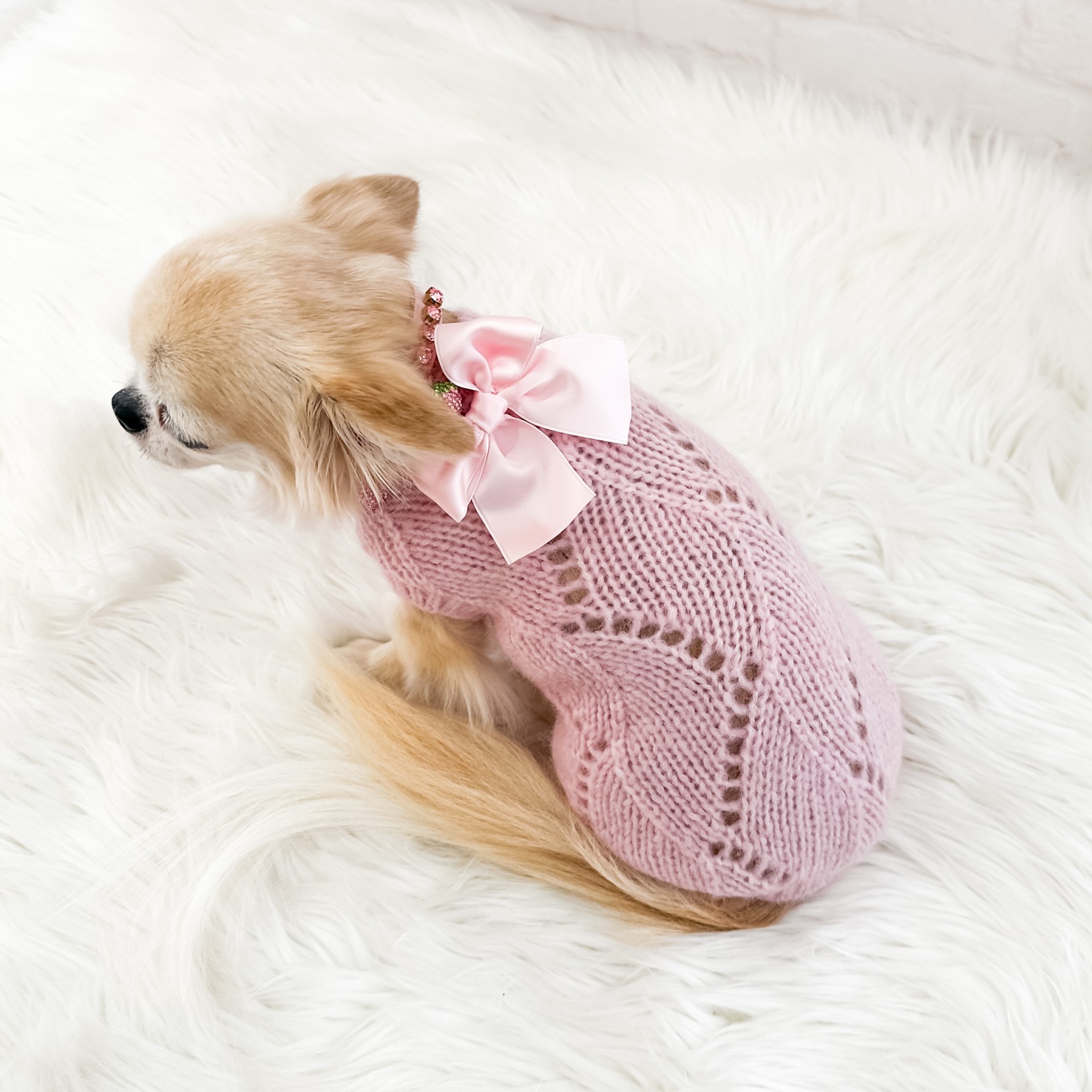 Maglioncino realizzato in un pregiato blend di lana merino e alpaca, caratterizzato da una raffinata lavorazione traforata ispirata allo stile bébé.