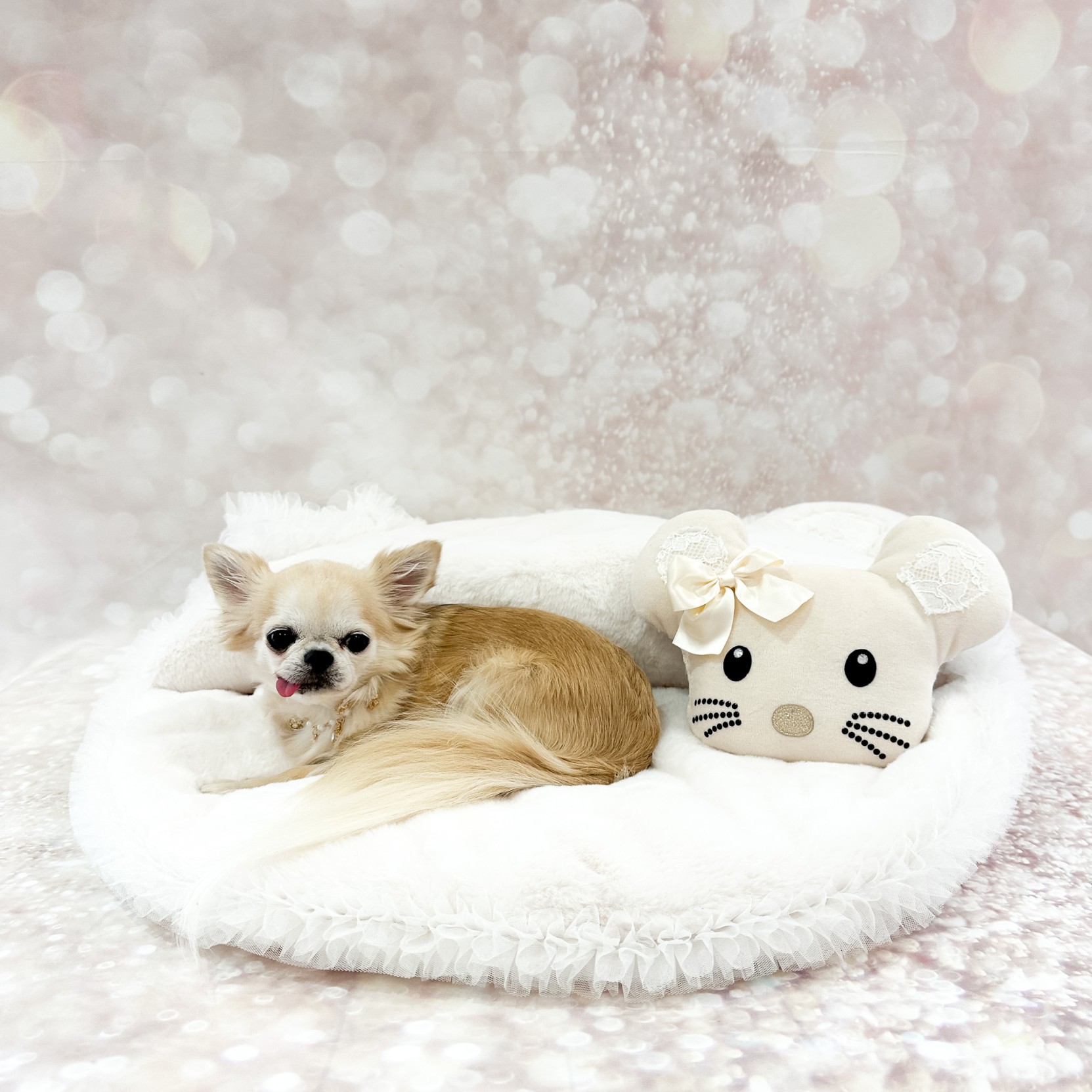 La novità della stagione è il fantastico materassino in calda ecopelliccia, pizzo e tulle che diventa un sacco nanna.