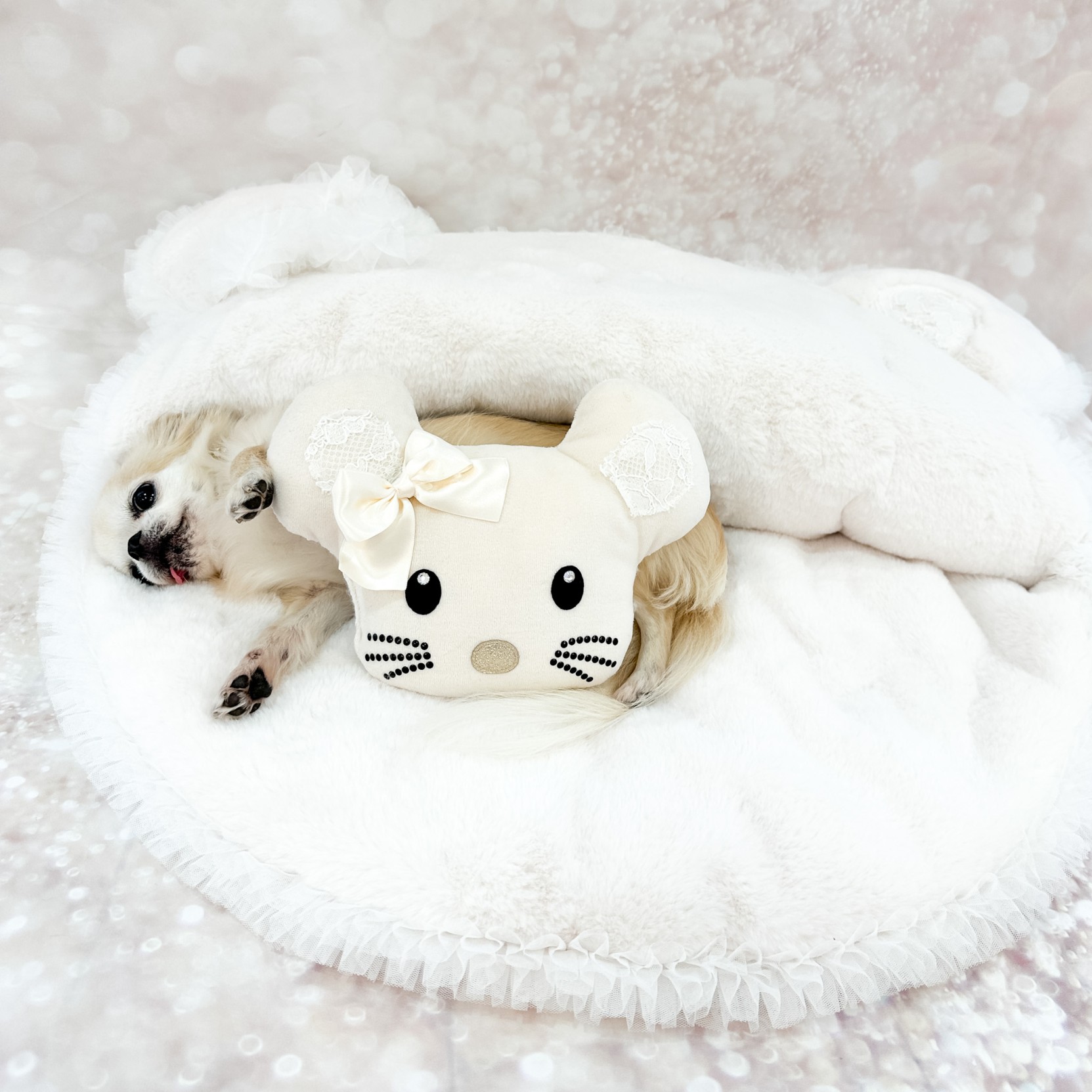 Il piccolo cuscinetto a forma di testolina di TopoMio è morbido e renderà le nanne del tuo piccolo amore ancora più dolci.
