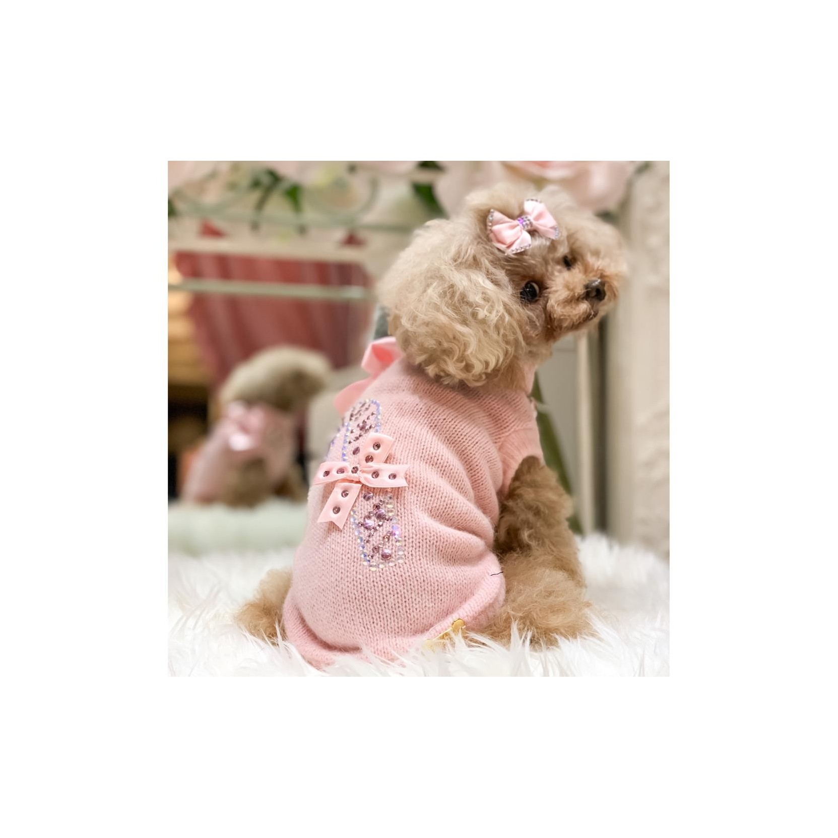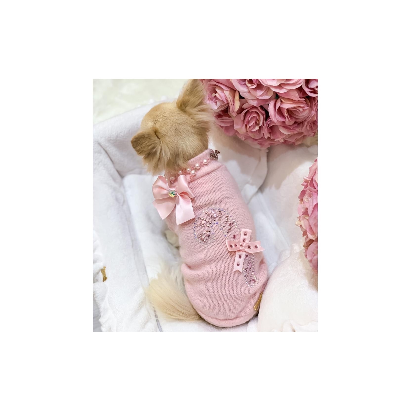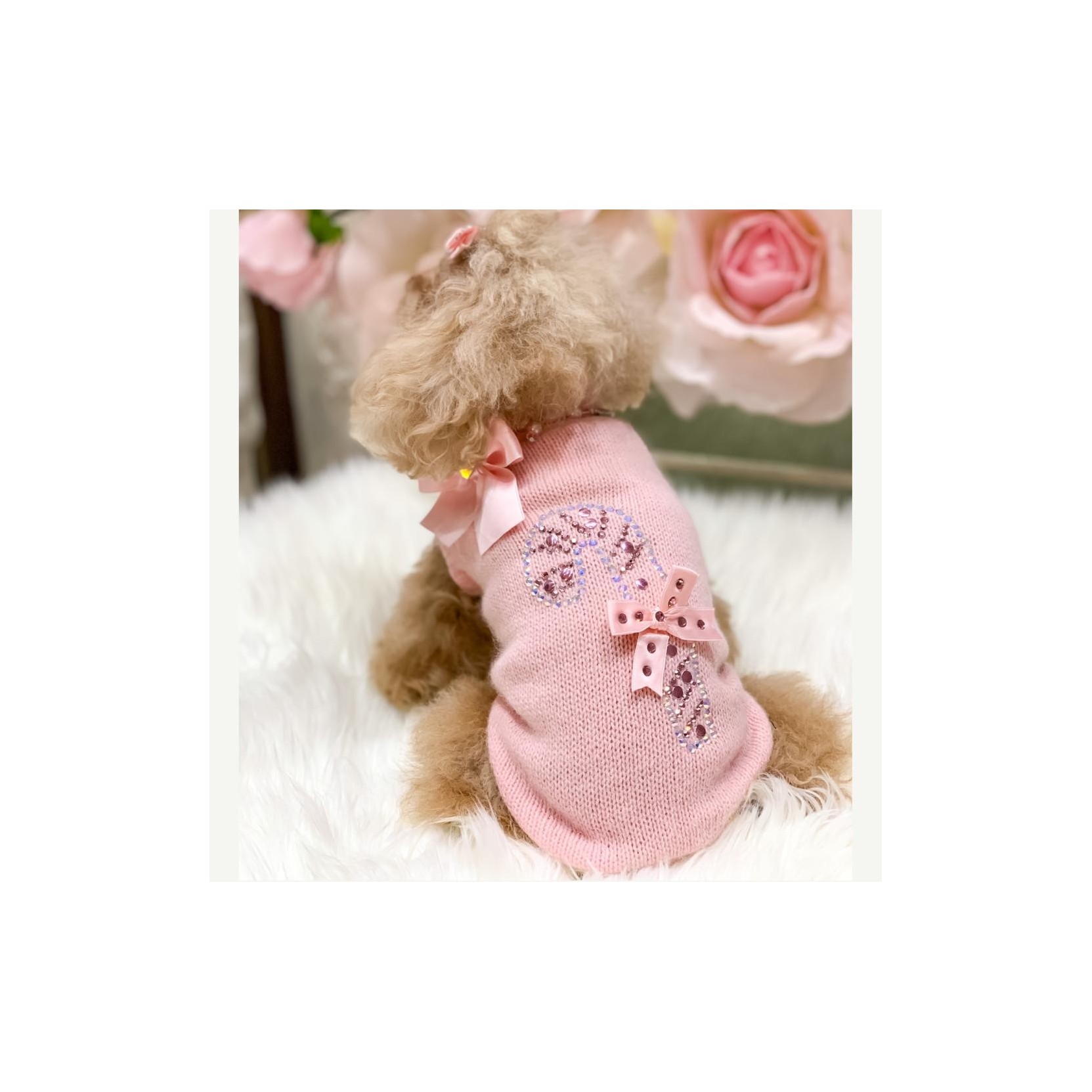 Morbido e caldo maglioncino in lana a collo alto decorato con uno scintillante bastoncino di zucchero ,un delicato fiocchetto in raso e cristalli  e il bellissimo fiocco con cuore centrale.