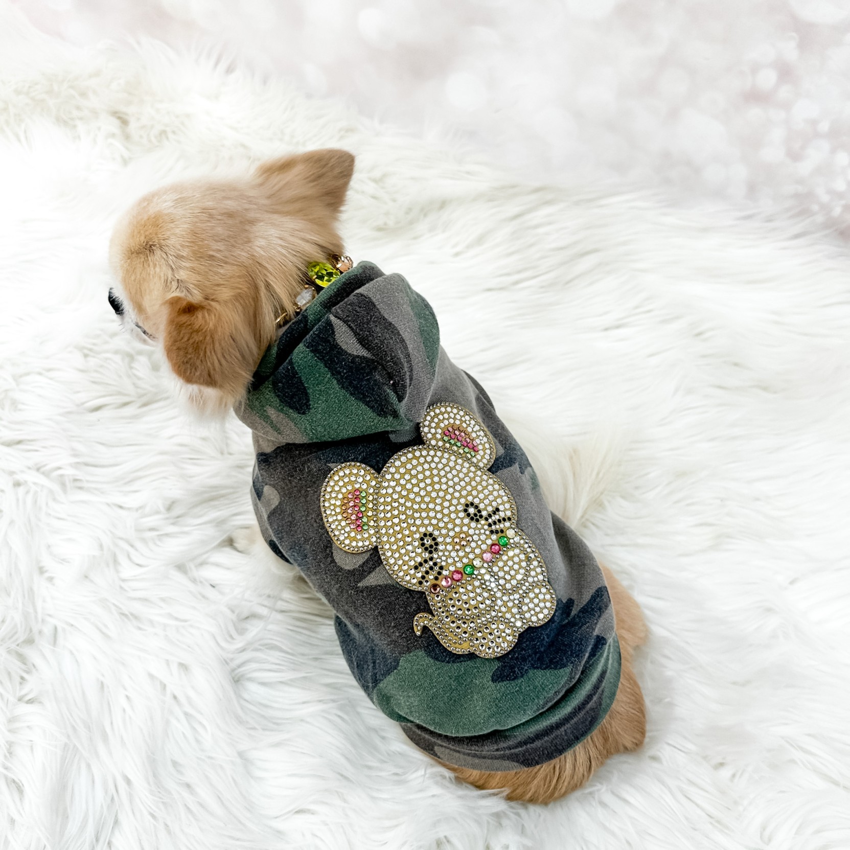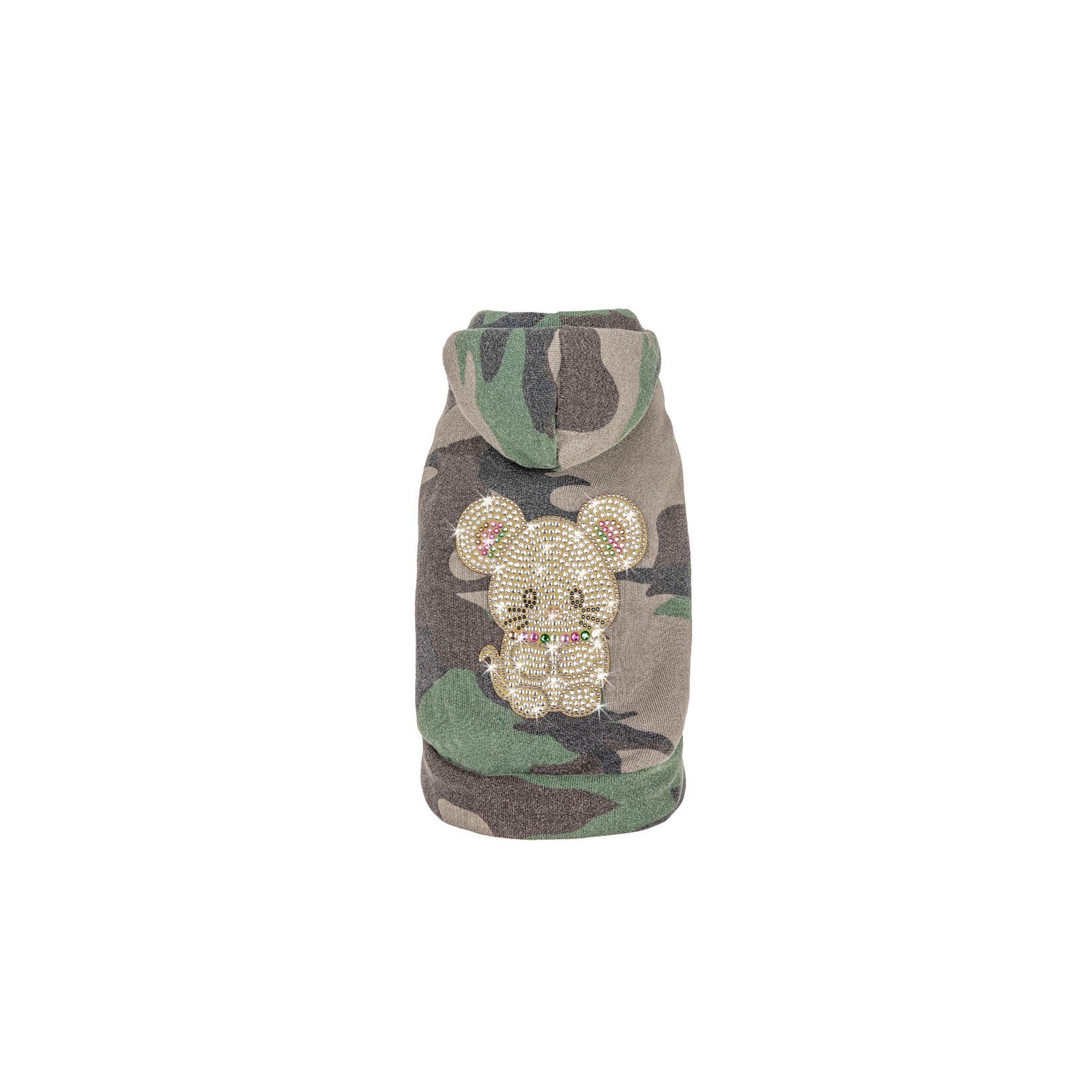 Bellissimo bomber in felpa 4 stagioni decorato con uno sfavillante TopoMio e un delizioso cappuccio (non staccabile) con scintillanti cordini coordinati.