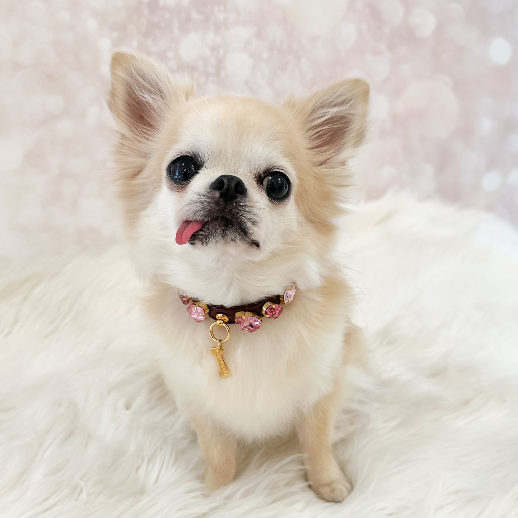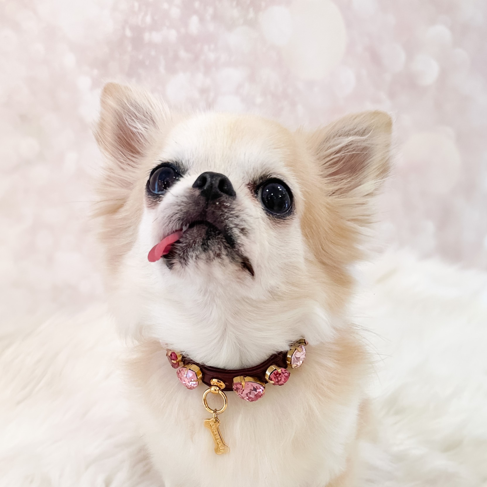 Un vero sogno il collare decorato con pietre scintillanti su una base in morbida ecopelle.