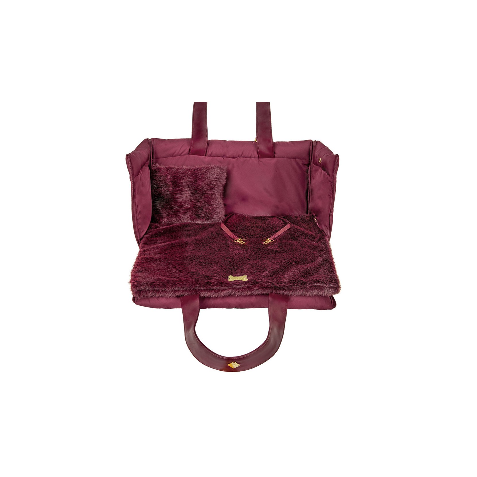 Realizzata in tessuto lavabile leggermente imbottito ed ecopelle è completa di un caldo cuscino in ecopelliccia e un piccolo cuscinetto per far appoggiare la testolina del tuo amore.